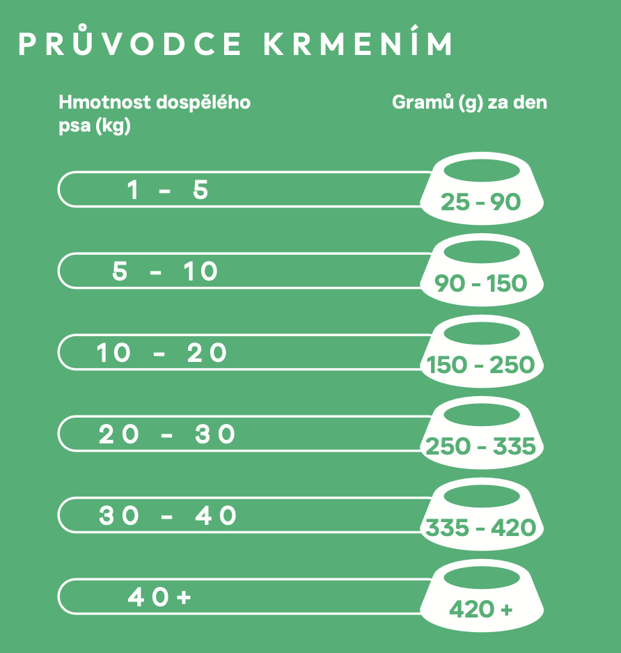 Každé zvíře je jiné a krmení by mělo být přizpůsobeno s ohledem na plemeno, věk, temperament a úroveň aktivity konkrétního zvířete. Při změně krmiva jej zavádějte postupně, během období dvou týdnů. Vždy zajistěte čerstvou a čistou vodu.