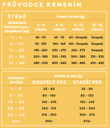 Každé zvíře je jiné a krmení by mělo být přizpůsobeno s ohledem na plemeno, věk, temperament a úroveň aktivity konkrétního zvířete. Při změně krmiva jej zavádějte postupně, během období dvou týdnů. Vždy zajistěte čerstvou a čistou vodu.